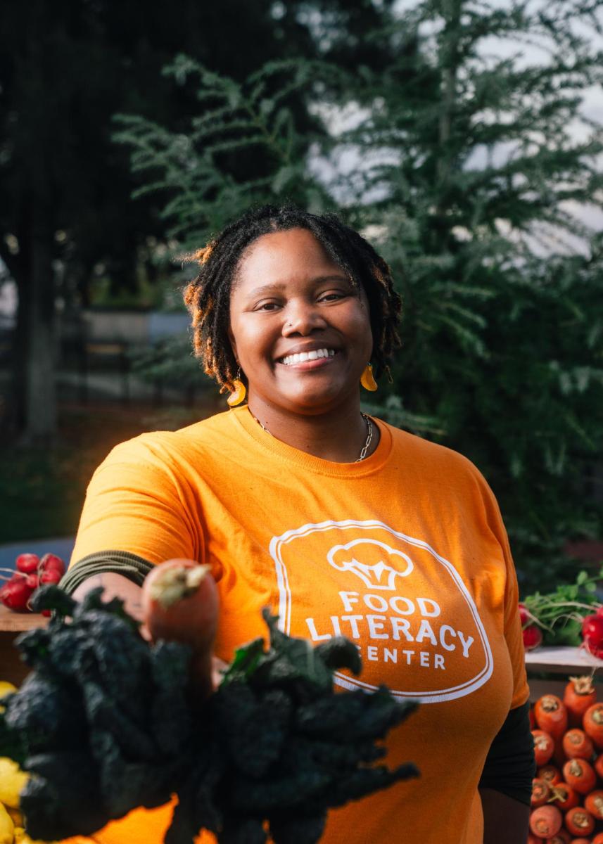 In 2024 Gerine successfully launched the nonprofit’s Food Adventure Dinner Series. This fundraising dinner series is an opportunity for guests to experience Food Literacy Center recipes accompanied by a unique dining experience. Gerine uses her culinary background and relationships to create joyful, educational food experiences that center children, families, and underserved communities.